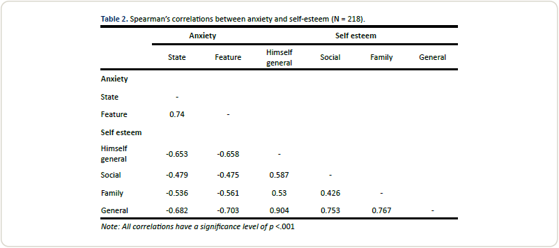 coefficient was obtained between self-esteem and state / trait anxiety, being