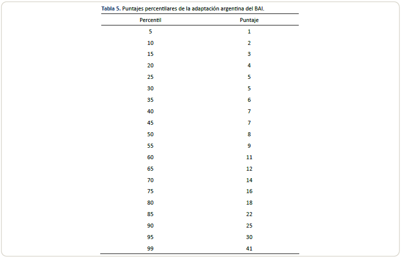 reliability has been found for the Argentine adaptation of the BAI. It is