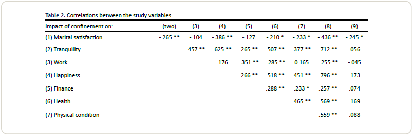 relación, menor impacto del confinamiento en los ámbitos de tranquilidad,