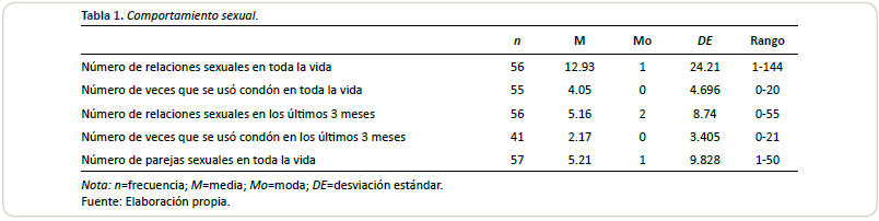 edad promedio de 20.02 años), su comportamiento sexual, el nivel de