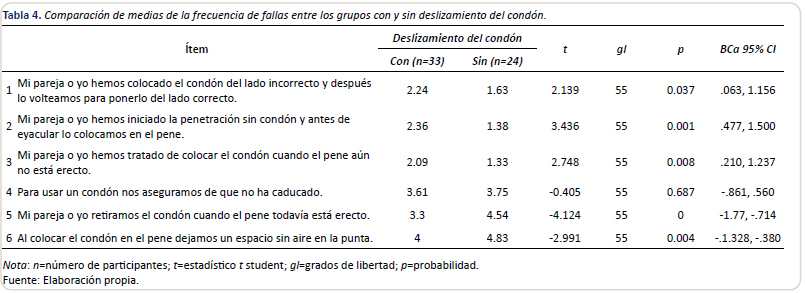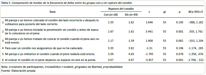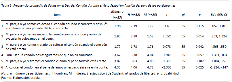 conocimientos sobre el uso correcto del condón y la frecuencia de fallas que