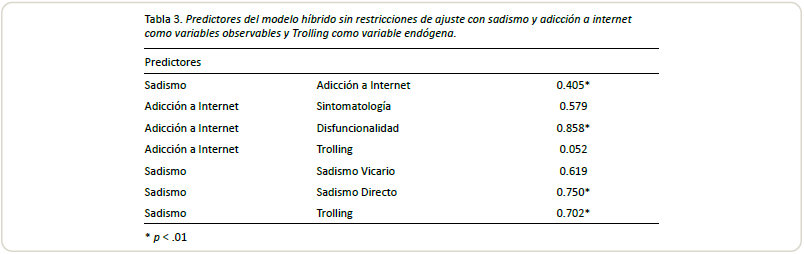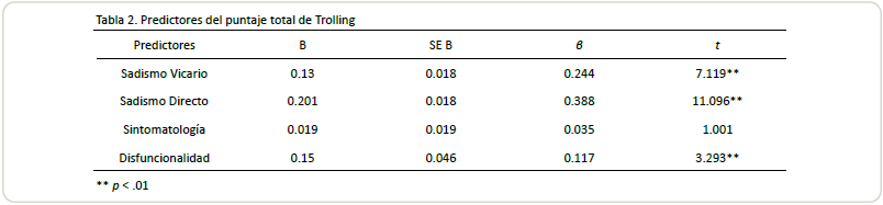 el trolling y la adicción a internet. Conclusión: El sadismo es un predictor importante para la conducta