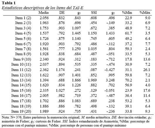 Análisis estructural del TAI-E y evidencias internas de validez