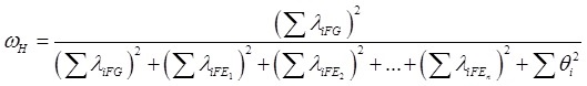 Para las dos fórmulas anteriores, λiFG se refiere a la carga factorial de cada ítem en el FG, λiFE a las cargas factoriales en cada FE, y θ2 es la varianza del error de cada ítem.
