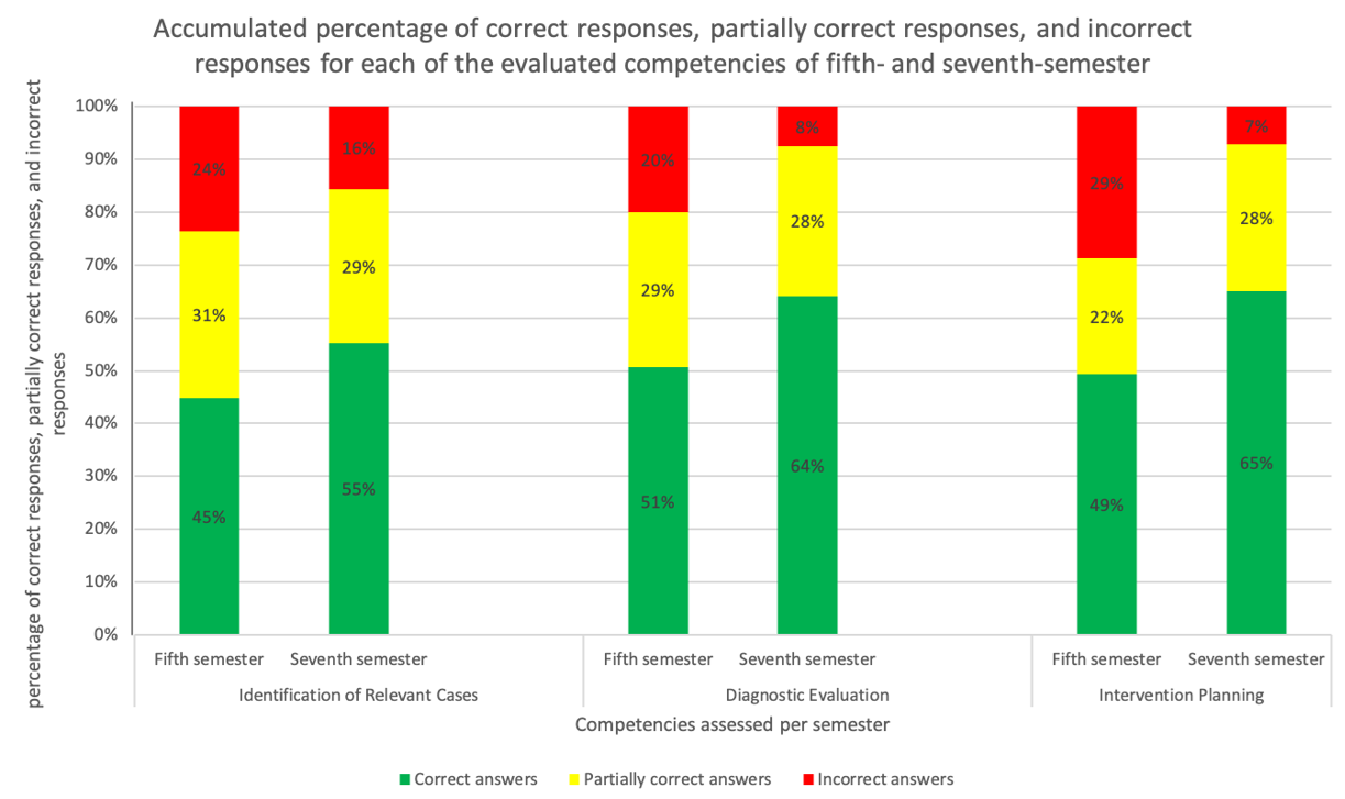 answers, and fifth-semester students 50%, differences that were statistically
