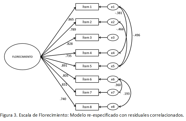 Introduction: The inclusion of correlations between residuals in measurement models is a common practice in psychometric research and is predominantly oriented to the statistical improvement of the model through increase (for example, IFC) or decrease (for example, RMSEA) of the magnitude of certain adjustment indices, rather than understanding the nature of these associations. This methodological report aims to present to the reader the modeling, management, and interpretation of correlated residuals in a framework of confirmatory factor analysis and poor specifications. Method: Using data from a previously presented study of 521 psychology students at a private university in Metropolitan Lima (75.8% women). The Flowering Scale is used to perform the analyses. Results and Discussion: These specifications would not have a real impact on the relationship of the elements with the construct they evaluate, so they do not contribute modifications to the understanding of the model. Therefore, specifying correlations between residuals could mask a poorly specified model, or with internal failures, by increasing spurious adjustment rates.