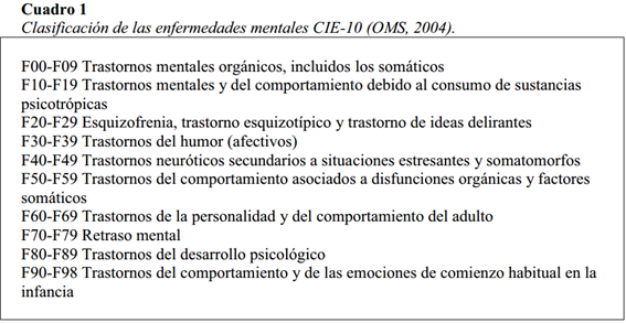 Caballero, L. (2007). Conceptos de enfermedad y trastorno mental. Clasificación. Trastornos clínicos y de la personalidad. Problemas psicosociales. Bases etiopatogénicas de los trastornos mentales. Medicine, 9(84), 5389-5395.