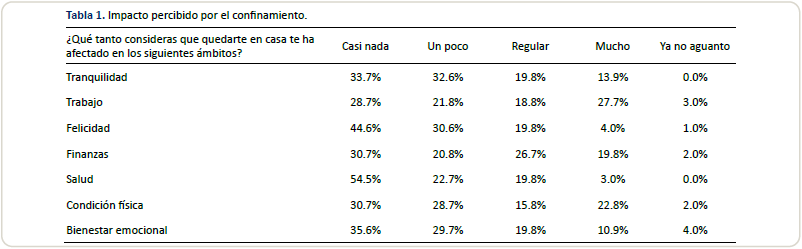 relación, menor impacto del confinamiento en los ámbitos de tranquilidad,