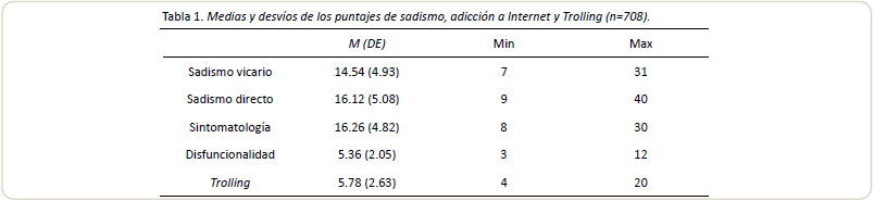 el trolling y la adicción a internet. Conclusión: El sadismo es un predictor importante para la conducta