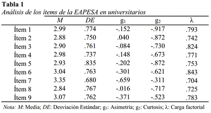 De forma preliminar fueron abordados otros aspectos como el análisis de modelos de medición o el uso de coeficientes de confiabilidad basados en variables latentes que no habían sido reportados en estudios previos realizados con muestras peruanas (Dominguez, 2014; Dominguez et al., 2012). Estos resultados permiten incrementar las evidencias de validez a favor del uso de la EAPESA en el ámbito universitario.