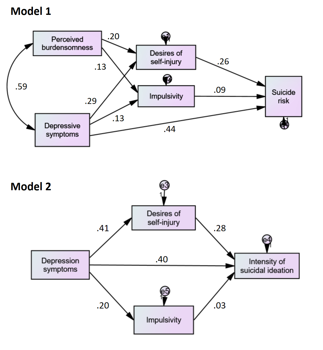 focused on suicidal risk (R2=.21; RMSEA=.026; CFI=.99) and the other