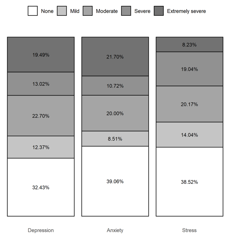 sample had severe to extremely severe symptoms of depression, anxiety, and