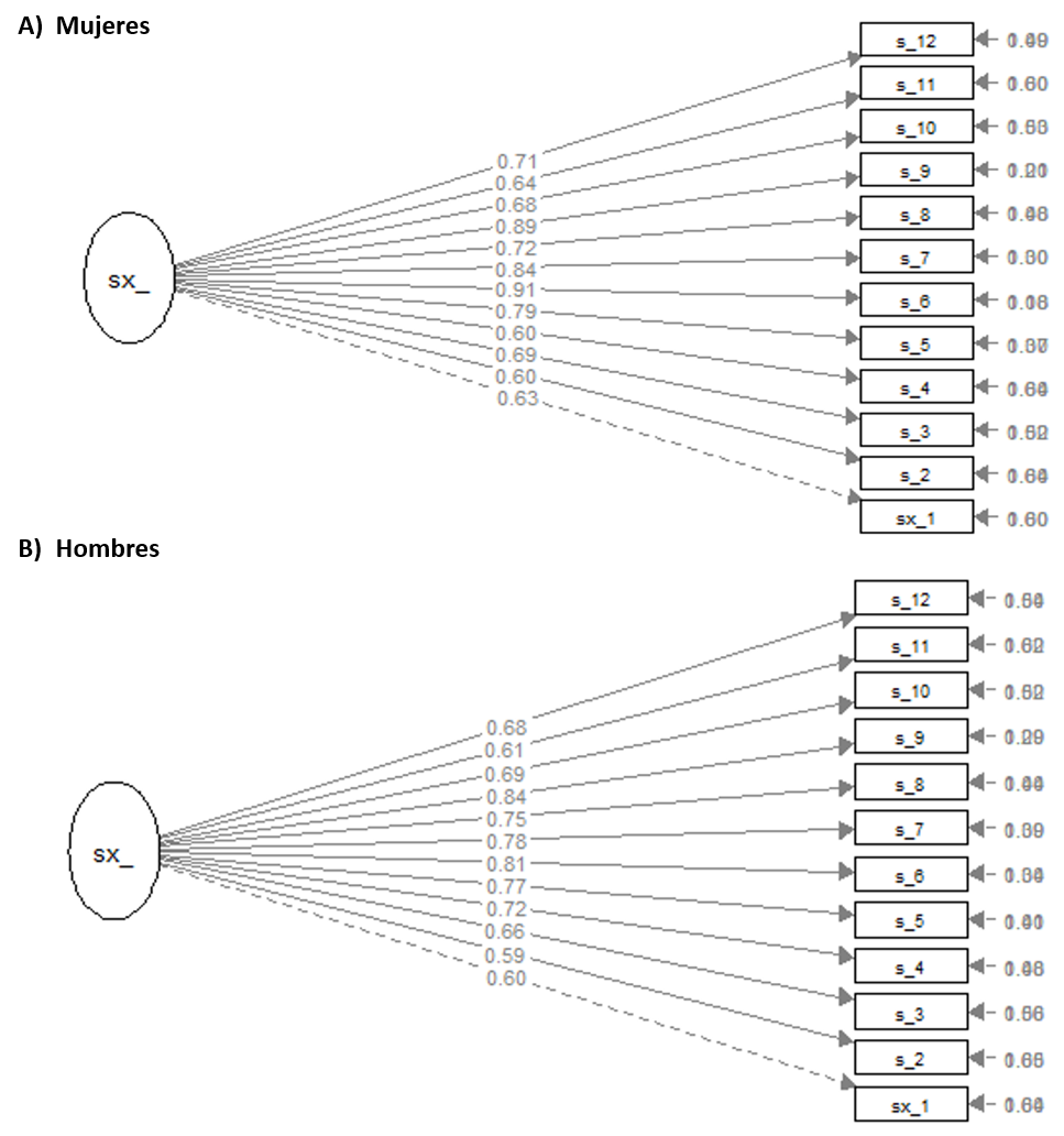hombres (CFI= .924, TLI = .907, SMRM= 0.069) y en mujeres (CFI= .936, TLI =