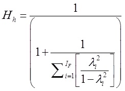 Por su parte, el coeficiente Hh (Hancock, 2001; Hancock & Mueller, 2001) que es un método estadístico para evaluar cuán bien una variable latente es representada por un conjunto de ítems (Dominguez-Lara, 2016a). El coeficiente H no está limitado por la cantidad de grupos, y puede ser calculado también para el FG. En este caso, evalúa la confiabilidad de cada FE controlando el efecto del FG (> .70; Raykov, & Hancock, 2005). El cálculo del coeficiente Hh, sea para el FG o para cada FE, se realiza con la siguiente expresión: