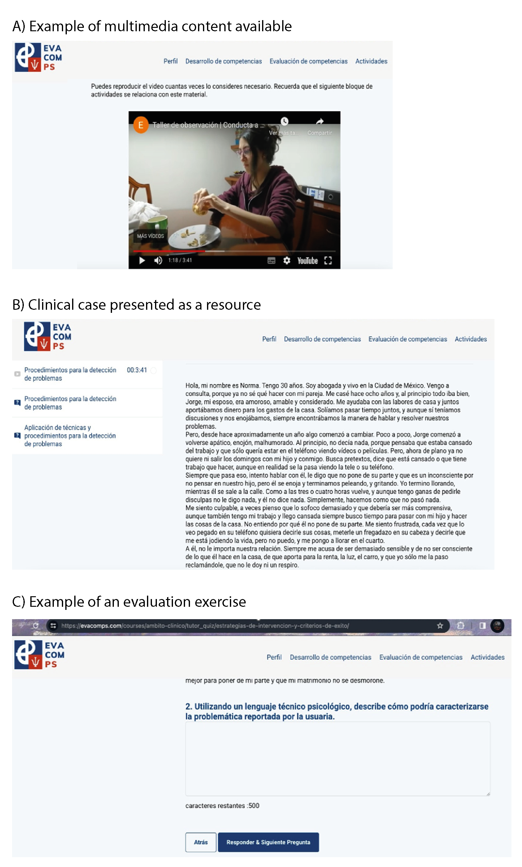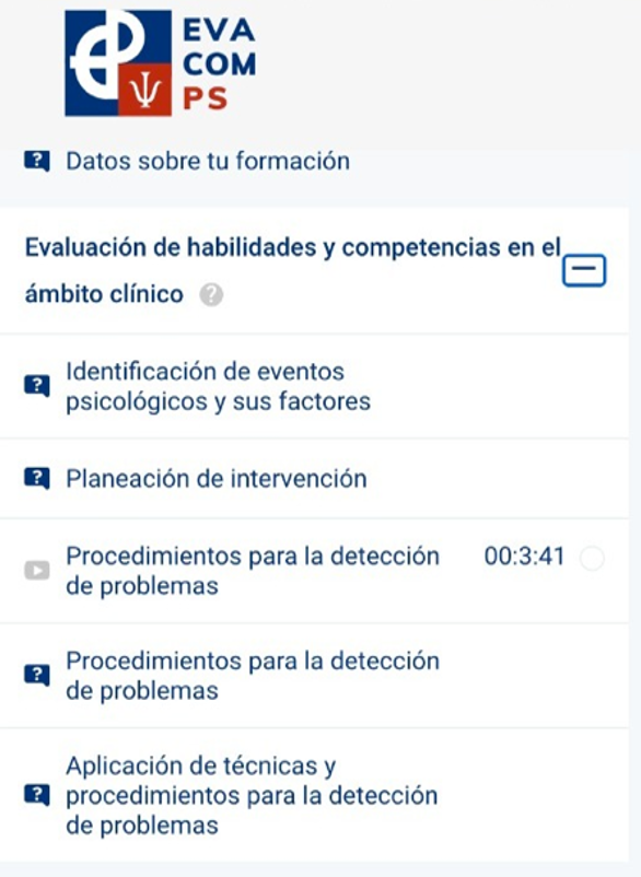 Psicólogos (EVACOMPS; Cruz, 2022) compuesto de veintiún ejercicios, organizados