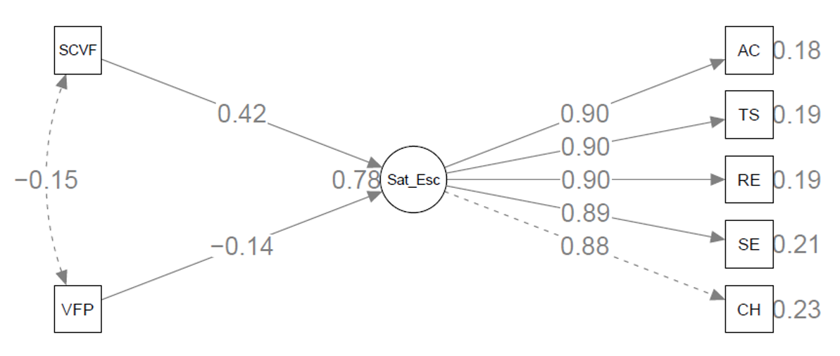 structural model of relationships between variables was tested using SEM. The