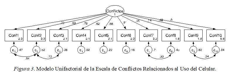 Por su parte, la Escala de Conflictos Relacionados al Uso del Celular mide la frecuencia con que los participantes perciben que el uso del celular causa conflictos en su relación de pareja. Consta de 10 ítems con una escala de respuesta de cinco puntos que fluctúan de Nunca a Todo el tiempo (e.g., Le he comunicado explícitamente a mi pareja cuánto me enoja su uso del celular). El rango posible es de 10 a 50 puntos. A mayor puntuación, mayores conflictos por el uso del celular percibe el individuo. Por último, administramos un cuestionario de datos sociodemográficos para obtener información relacionada a la edad, tipo de relación, preparación académica e ingresos anuales.