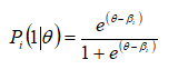 Según la expresión matemática del modelo, esta probabilidad de puntuar 1 en lugar de 0 dependerá de si el evaluado cuenta con un nivel de rasgo θ suficiente como para superar un parámetro de localización βi que caracteriza al ítem. Este parámetro se mide en la misma escala que el rasgo y suele denominarse, en el contexto de los tests de rendimiento típico como parámetro de adhesión (Rojas & Pérez, 2001).