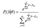 Aunque la expresión resulta matemáticamente compleja, Embretson y Reise (2000) la resumen considerando que la probabilidad de elegir la opción h se define como una exponencial correspondiente a esa opción que se divide por la sumatoria de las exponenciales de todas las categorías del ítem. En esencia, el MCP establece que la probabilidad de una persona de responder la opción h se corresponde con la diferencia entre su nivel de rasgo θ y el conjunto de todos los parámetros de umbral βih del ítem i (Gempp, et al., 2006).