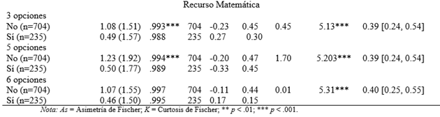 En resumen, los formatos con mayor número de categorías incrementaron la precisión del instrumento en los niveles extremos del rasgo, pero a costa de comprometer el ajuste global del modelo. Por el contrario, el formato de tres categorías mejora el ajuste del modelo pero aporta una menor información para medir en una parte considerable del espectro del rasgo. En suma, y en consonancia con las conclusiones de Maydeu-Olivares et al. (2009), la decisión respecto de cuál es la cantidad óptima de opciones de respuesta para la prueba de Utilidad de la Matemática requiere establecer un equilibrio entre el grado de ajuste del modelo y la precisión de la medida. Por lo expuesto, considerando los formatos ensayados, parece conveniente adoptar la escala de cinco categorías.
