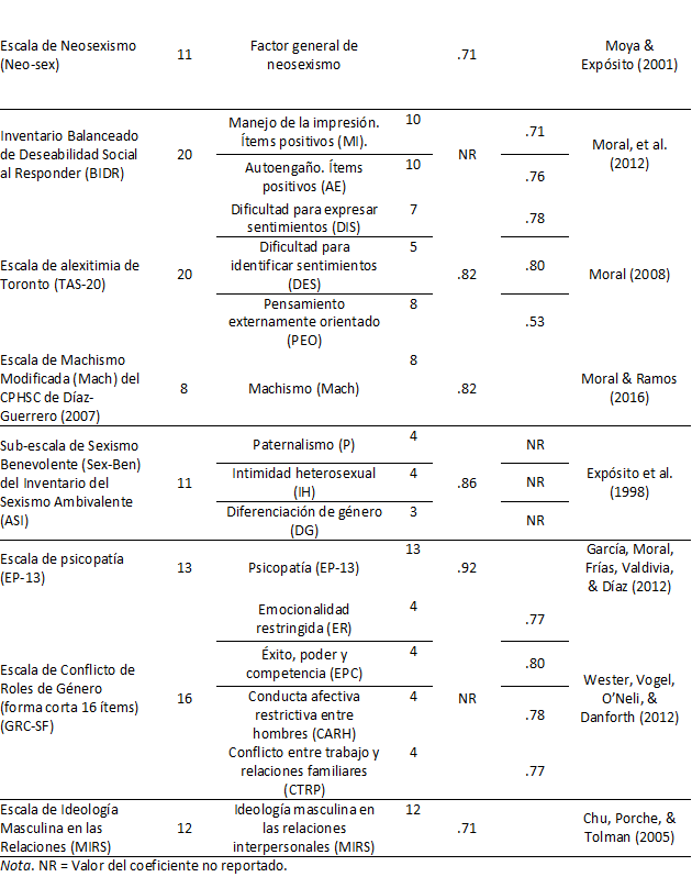 Cabe señalar que, para medir la homonegatividad, se usó la escala de 16 ítems desarrollada por Moral y Valle (2013). Se omitió el adjetivo “internalizada”, para evitar generar confusión, ya que se suele usar cuando el concepto de homonegatividad se aplica a población no heterosexual, que no es el caso. Este instrumento de medida fue diseñado para su aplicación con independencia de la orientación sexual, e incluye un factor que evalúa rechazo hacia sentimientos homoeróticos (“no me incomodaría si otras personas supieran que tengo sentimientos homoeróticos”, “si fuera homosexual, no cambiaría mi orientación sexual, aunque pudiera hacerlo”, “hacer o responder a un coqueteo de tipo homosexual sería muy difícil para mí”, “ser homosexual representaría una desventaja para mí”, “buscaría ayuda profesional si llegara a darme cuenta que tengo sentimientos homoeróticos”, “me sentiría contrariado, debido a la presencia de sentimientos homoeróticos en mí”). Los autores usaron el término de homonegatividad internalizada en un sentido amplio. Proponen romper la barrera “el otro gay” versus “yo heterosexual” cuando se estudia la homonegatividad. Así, indican que se internaliza el rechazo social hacia el homoerotismo no sólo en su manifestación externa “el otro gay”, sino también en la dimensión interna “yo”. No obstante, el deseo homoerótico no es ajeno al “yo”, una vez que se considera la plasticidad de la sexualidad humana y el potencial natural de conductas homoeróticas en diversas situaciones socio-ambientales (Moral, 2010a).