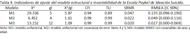 Validity and invariance according to sex and age of the Paykel Scale of Suicide Ideation in Peruvian adolescents